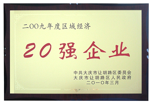 2009年度區(qū)域經(jīng)濟20強企業(yè)等殊榮